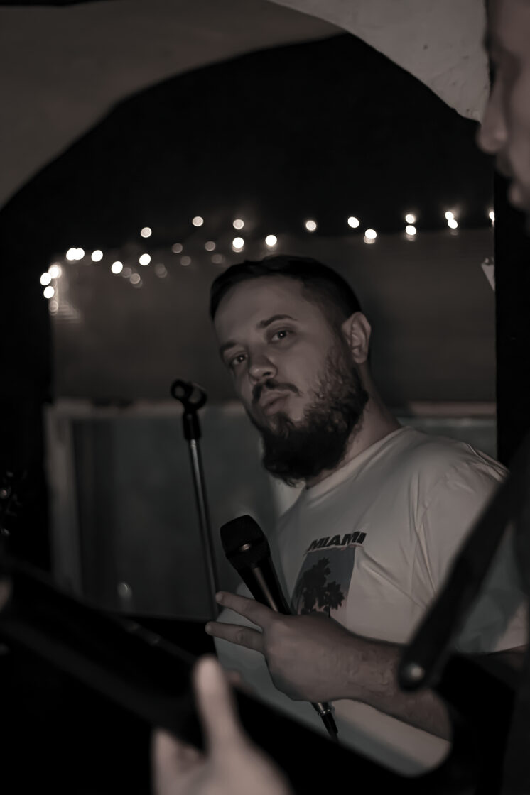Énekes átérzéssel a mikrofon előtt -